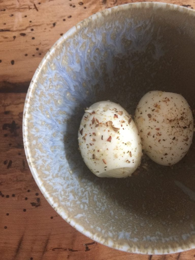 Years later, in the egg white omelety 1980s, I began to curtail my egg intake because of the genetically high cholesterol I was gifted from my mother. In the 90s, I discovered oeufs en meurette at the defunct La Goulue in Manhattan, and would have them once a year when I took my mother to her favorite restaurant for Mother's Day. In the early 2000s, I married Susan, who taught me how to make a meal out of a perfectly poached egg on garlic-rubbed sourdough toast drizzled with olive oil; we ate this at least once or twice a month. In the mid-2000s, when I began to write full-time from home and was blessed with a chicken-keeping neighbor, I started making a single boiled egg every morning: I would sprinkle it with sea salt, roll it around in a shallow stoneware dish of dukkah, and eat it standing up in the kitchen, the dog at my feet. And then my mother would call, like Pavlov.