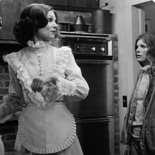 Still, I am feeling dislocated, as if I’m hovering above my Self down there in my tidy little ranch house in New England, with my wife and my dog and my cats, going about our business. But looking down into this diorama of mundanity, things are a bit off: everything is a little hazy, as though someone smeared the lens with Vaseline. We’re all ambling around, banging into things, like Paula Prentiss in that scene in The Stepford Wives when Katherine Ross stabs her with a kitchen knife and she just keeps going, but her internal wiring has come undone and she drops all the coffee mugs and spills the grounds on the floor. I thought we were friends. I thought we were friends. We’re all going about our business, pretending that everything is normal — it’s dinnertime, so let’s sit on the couch and go through the mail while the pasta water boils; it’s laundry day, so Susan is folding underwear while we listen to music — but it’s not normal at all.